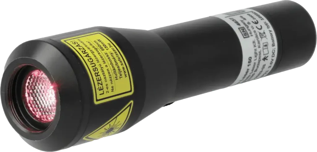 - Teljesítmény: 150 mW folytonos, biztonságos (szórt) lézersugárzás